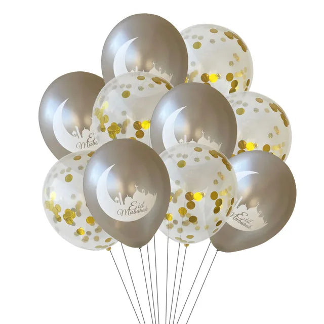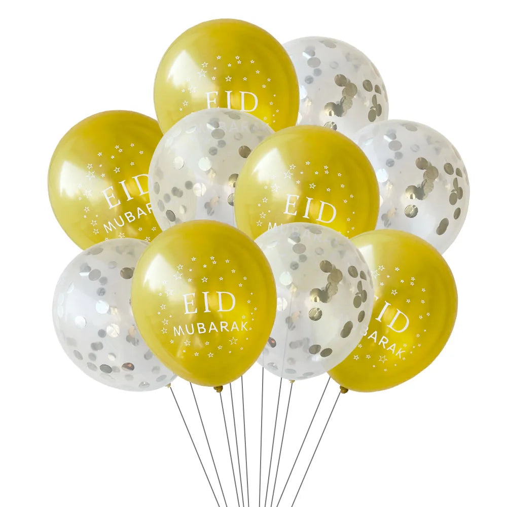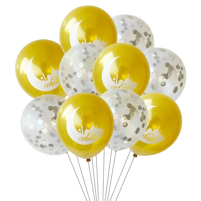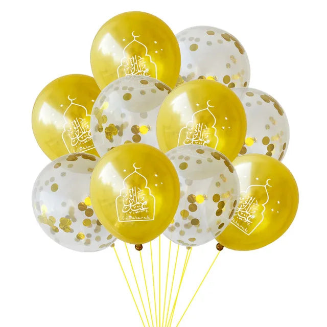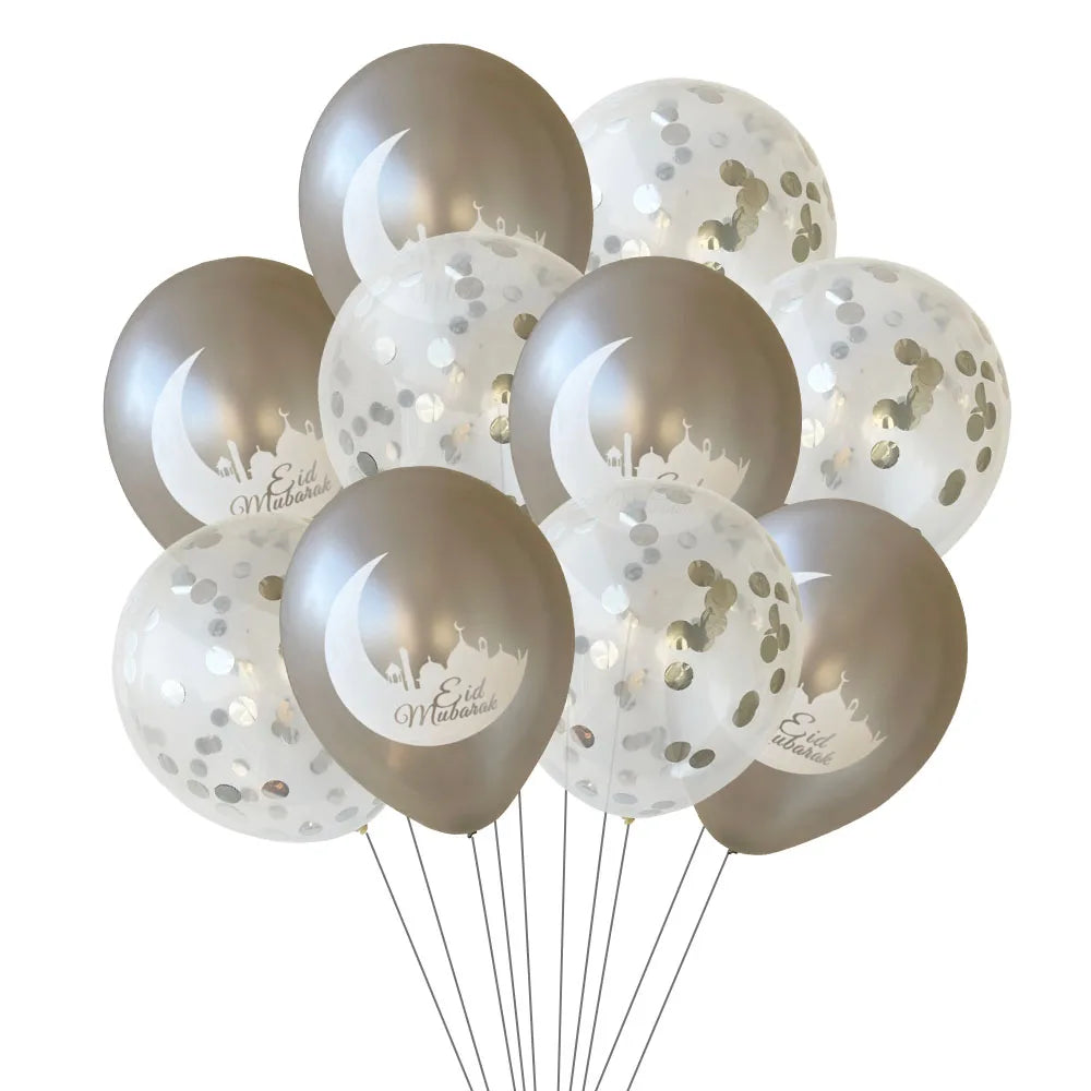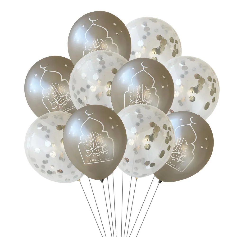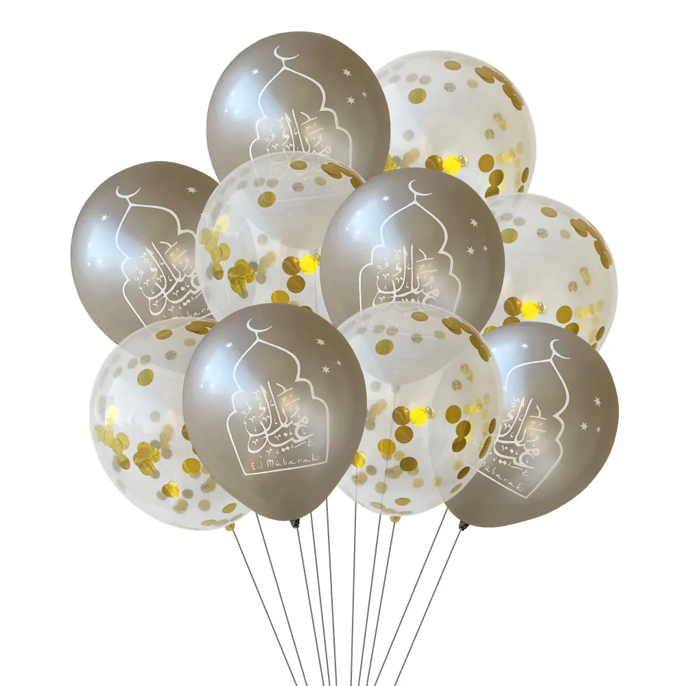 10pcs Eid Mubarak Balloons Confetti Balloons Islamic Decor Happy Ramadan Muslim Festival Decoration Ramadan supplies