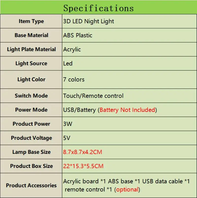 - Lamp Base Size: 8.5x8.5x3.7 CM