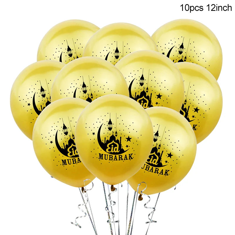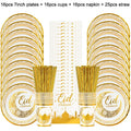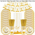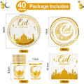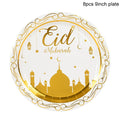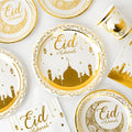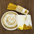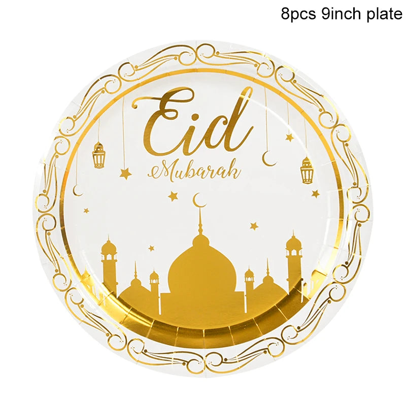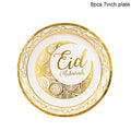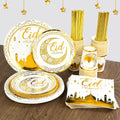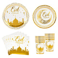 Eid Mubarak Disposable Tableware Gold Plate Cup Banner Gift Bags Islamic Muslim Party Supplies 2024 Ramadan Kareem Decorations