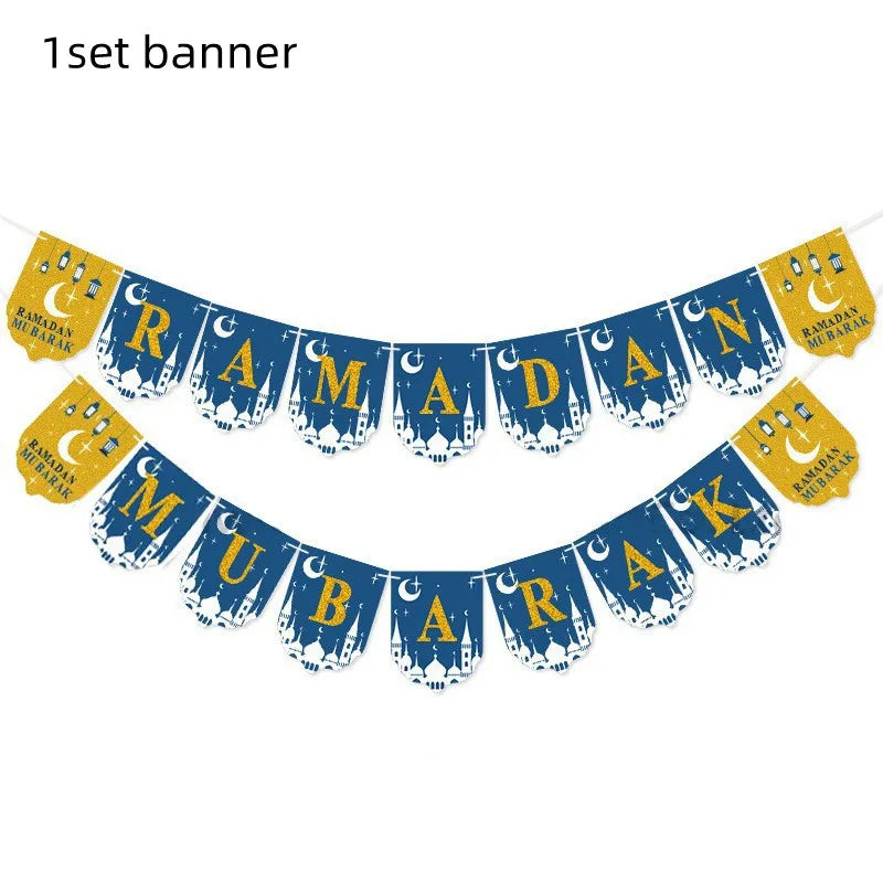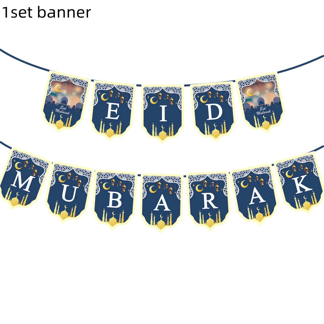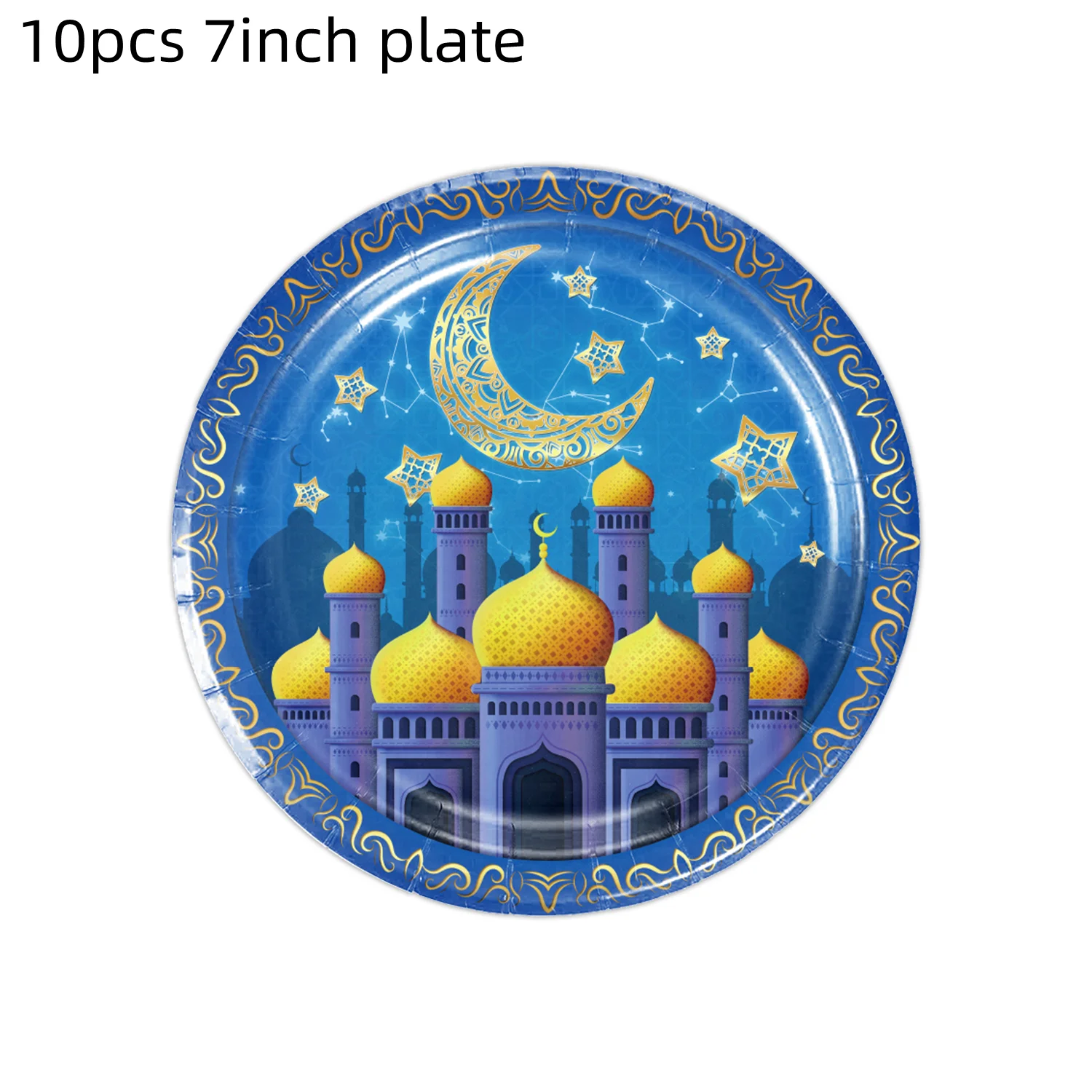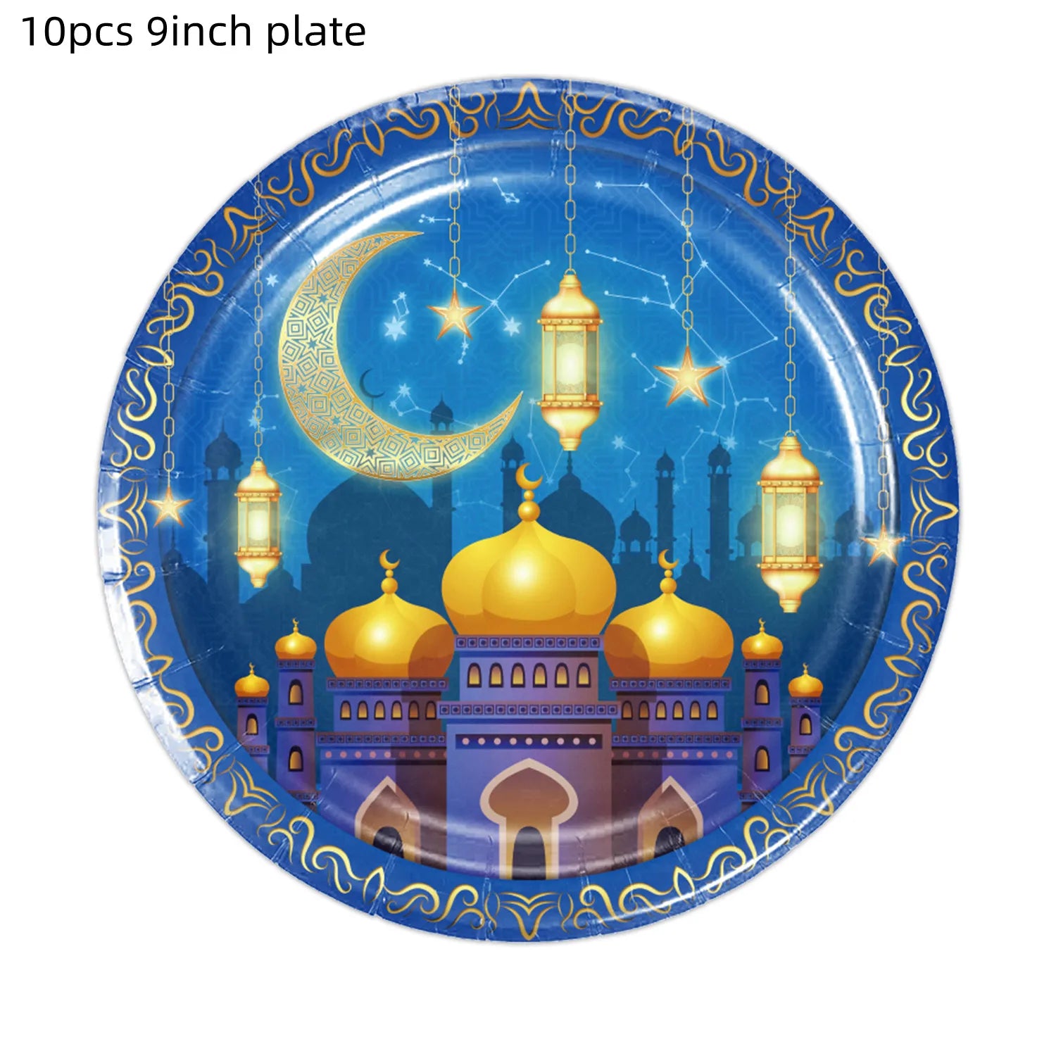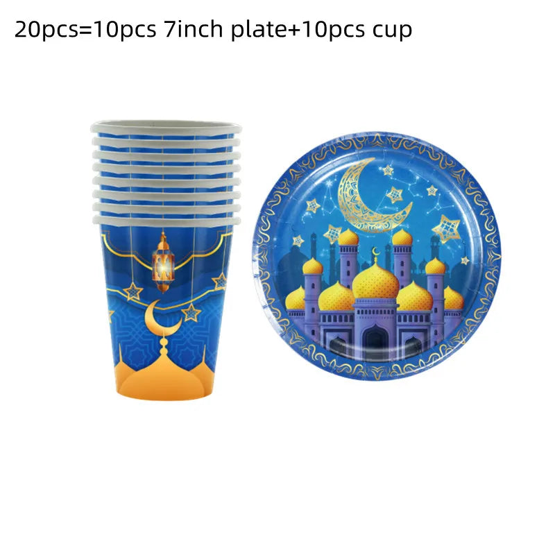 Eid Mubarak Plates Banner Balloon Tableware Ramadan Decoration