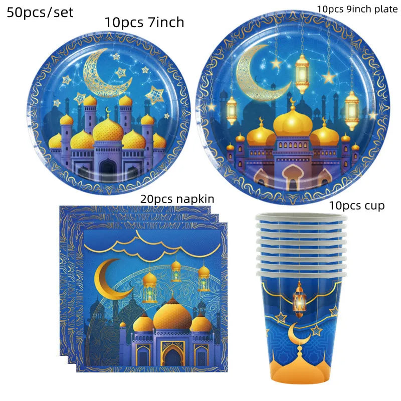 Usages: Eid Mubarak Party Supplies, Disposable Tableware Set, Eid Mubarak Party, Eid Mubarak Balloons,