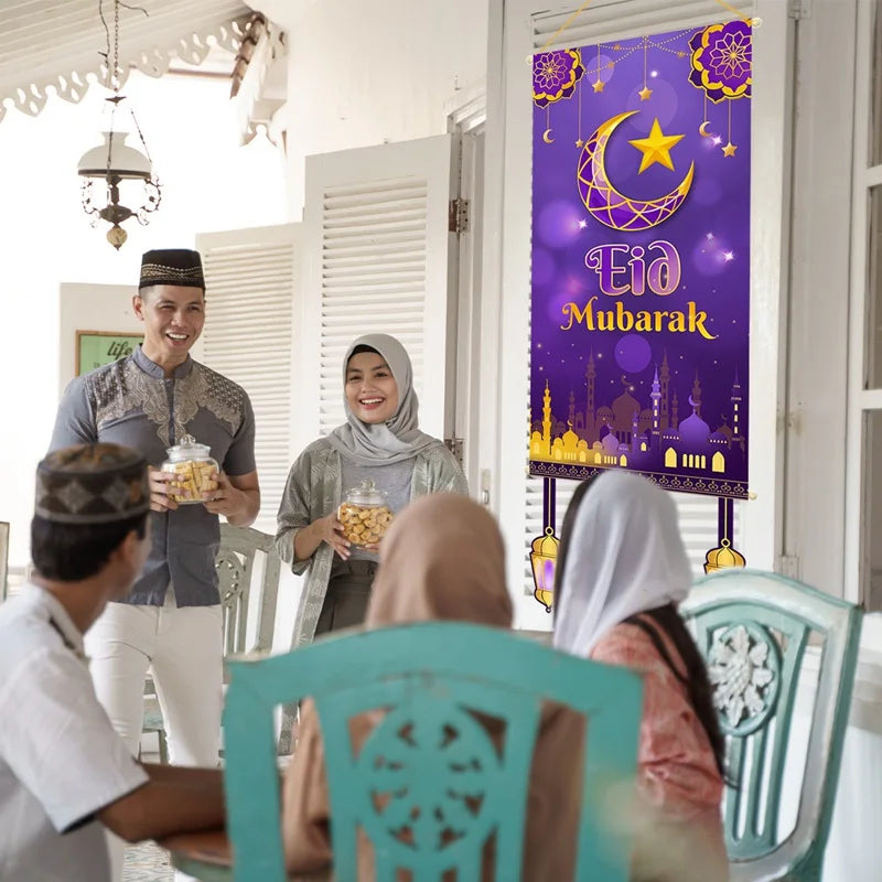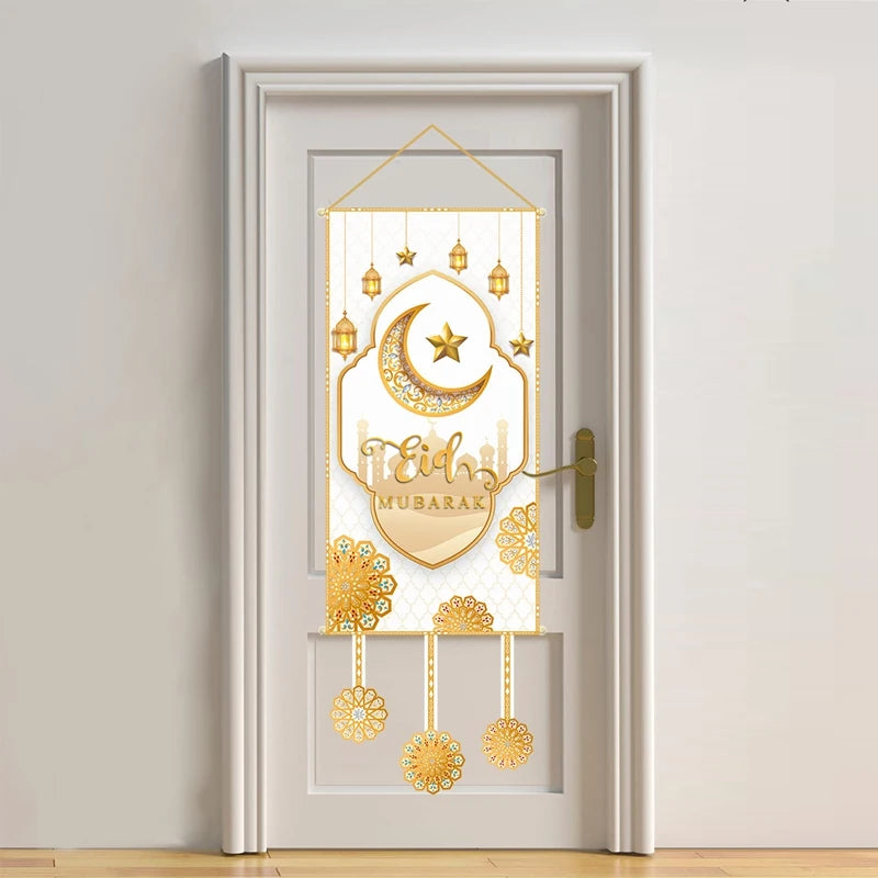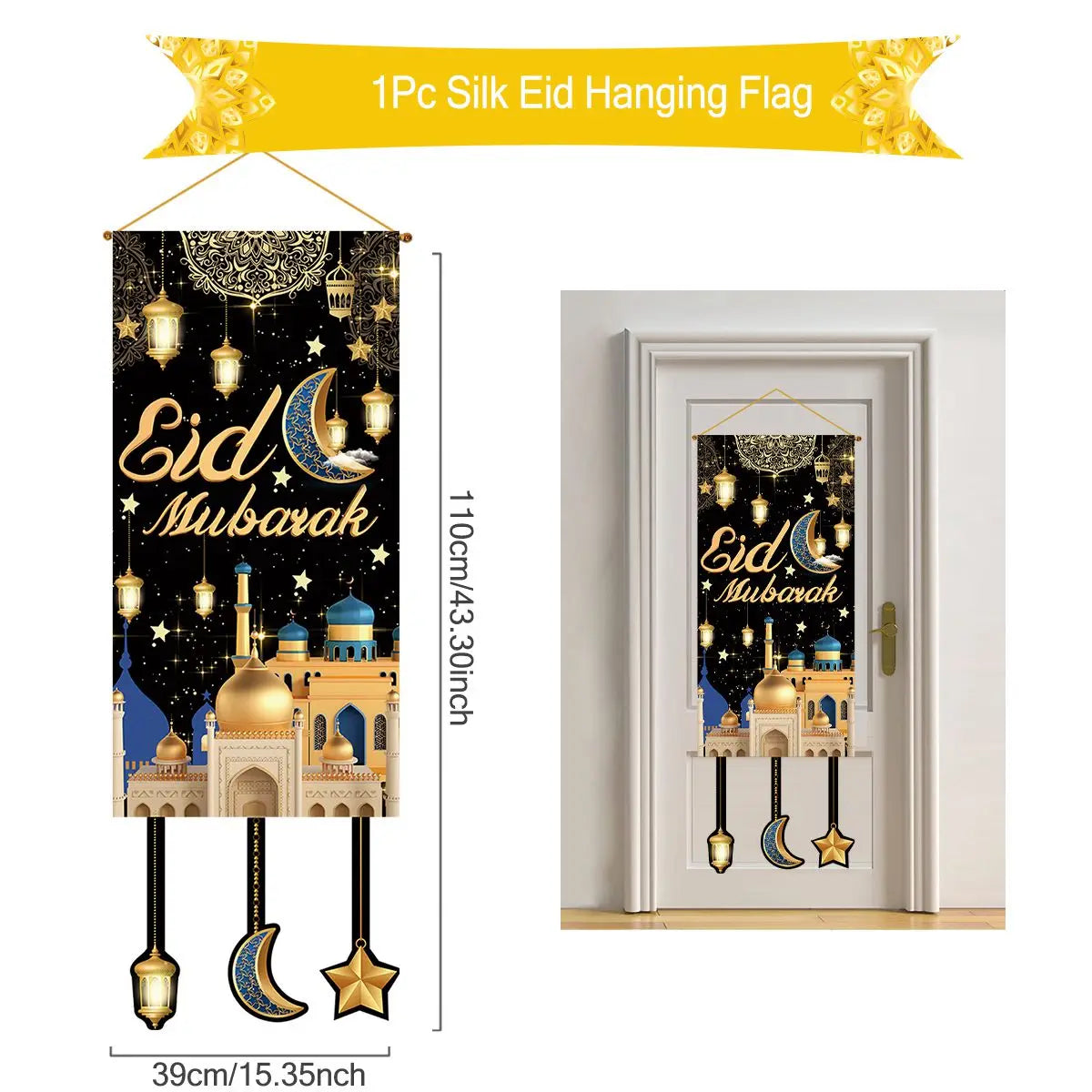 Celebrate Eid and Ramadan in style with the Eid Mubarak Decoration 2025 Hanging Flag! Made from high-quality cloth, this vibrant banner is perfect for decorating your home, doors, and party spaces. Whether it's for Ramadan, Eid al-Fitr, or Eid al-Adha, this elegant and reusable banner is designed to add a festive and traditional touch to any setting. It also makes a thoughtful gift for friends and family, allowing you to share the joy of these special occasions.