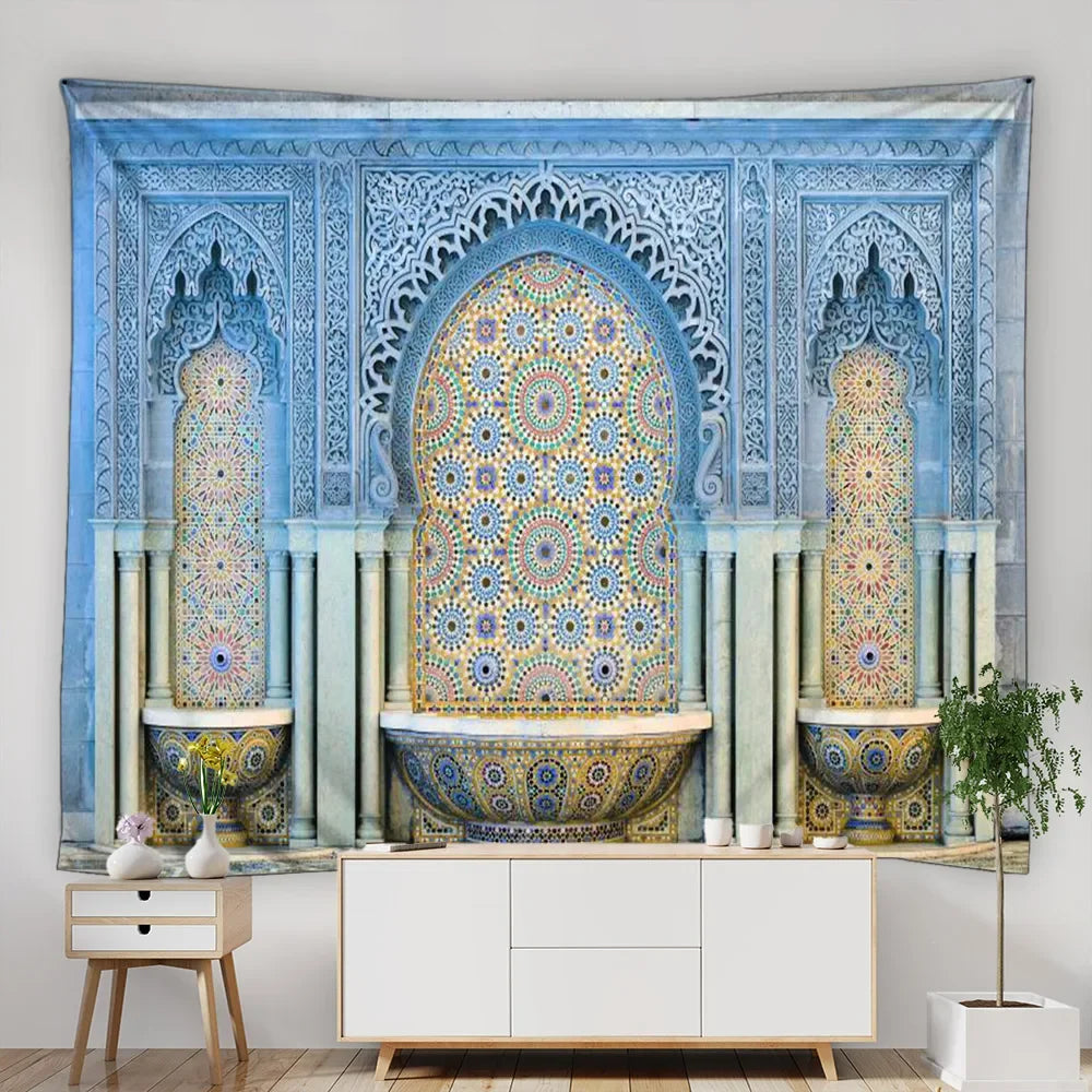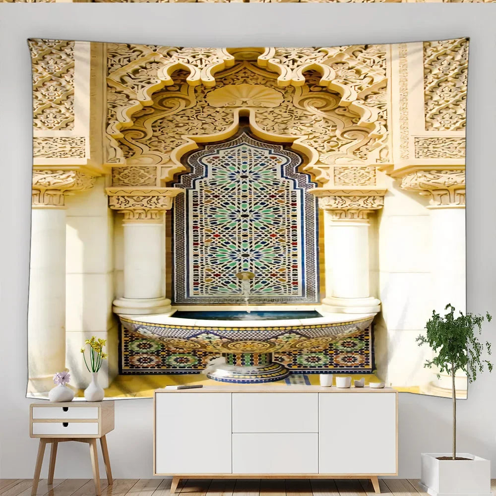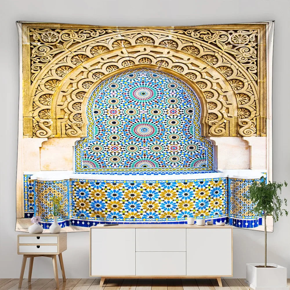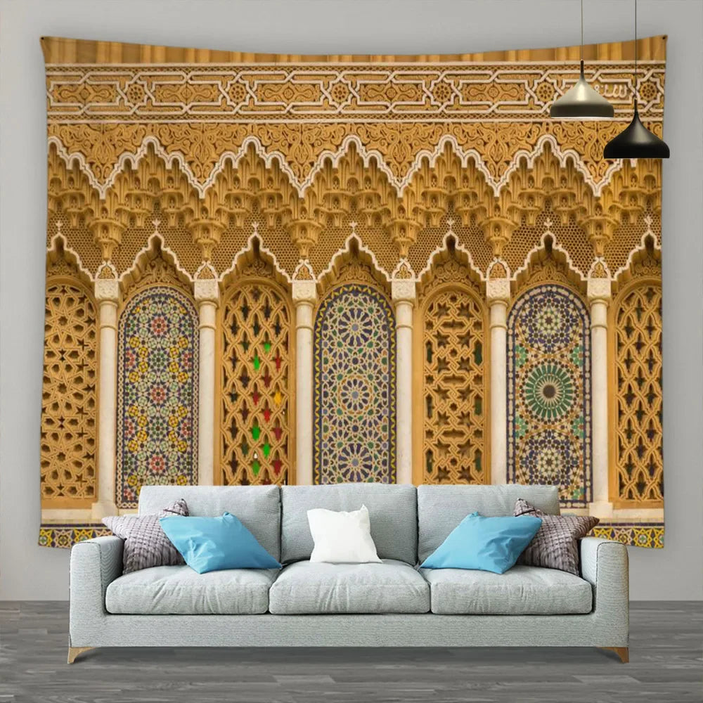 Islamic Retro Geometric Pattern Tapestry Moroccan Architectural Wall Hanging
