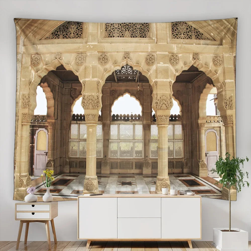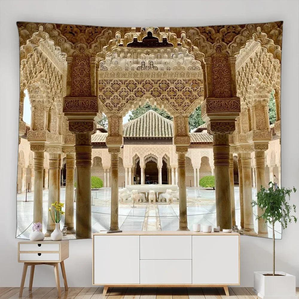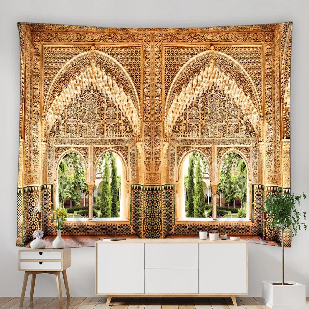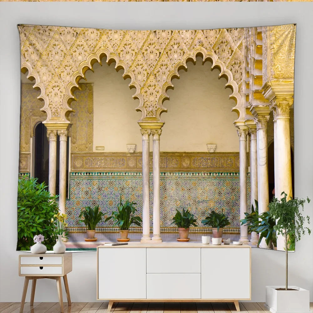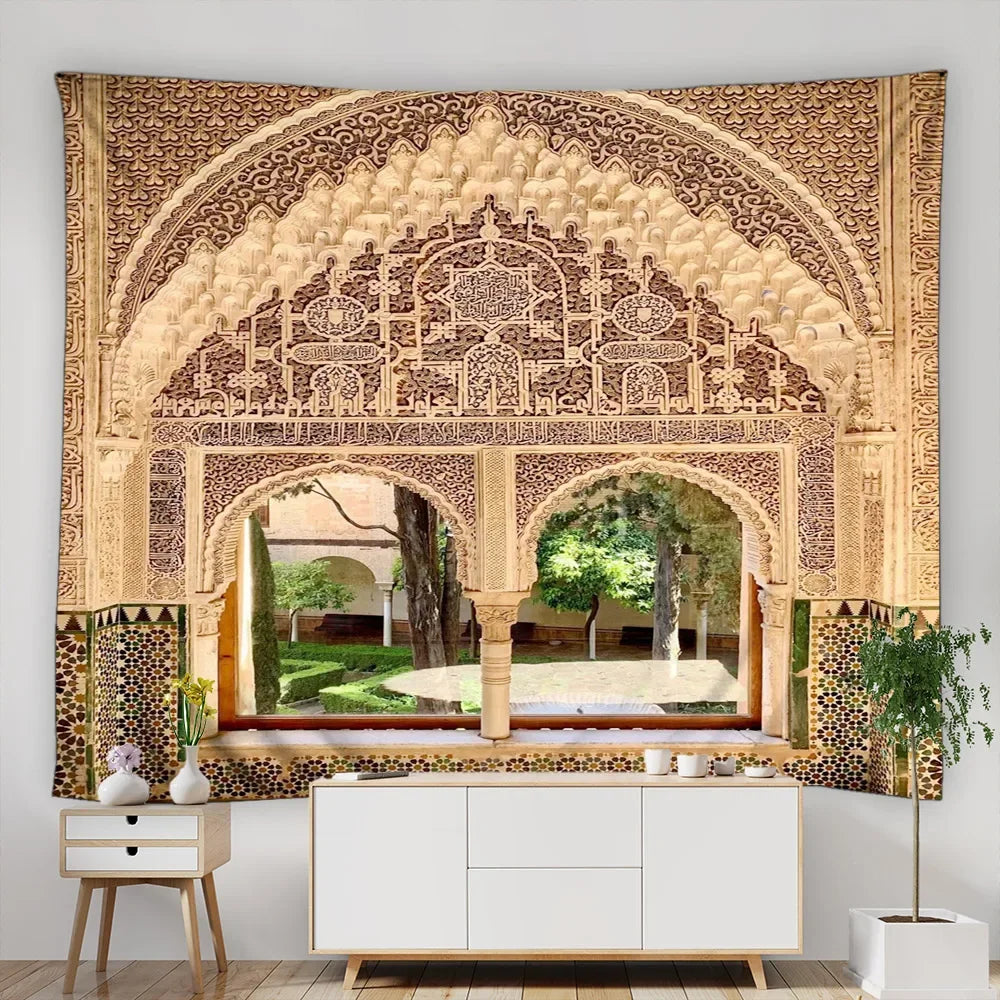 Islamic Retro Geometric Pattern Tapestry Moroccan Architectural Wall Hanging