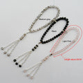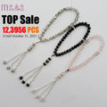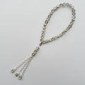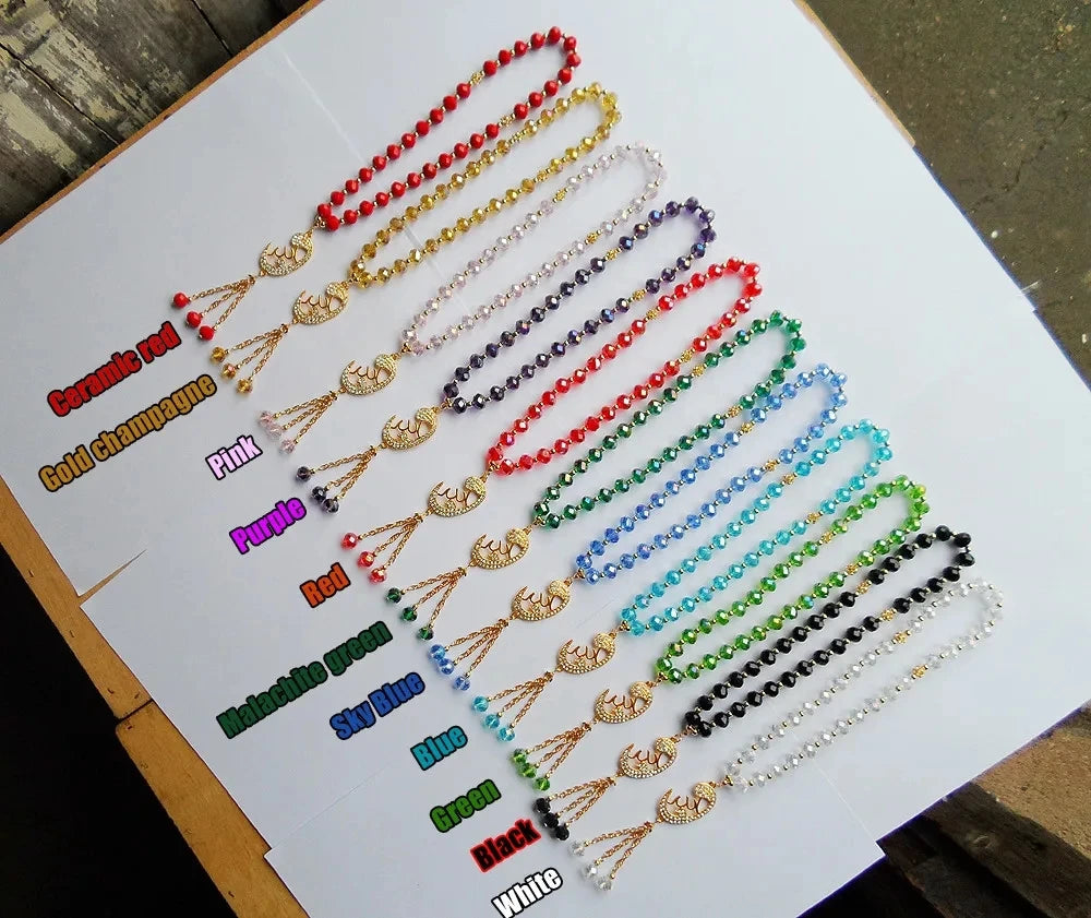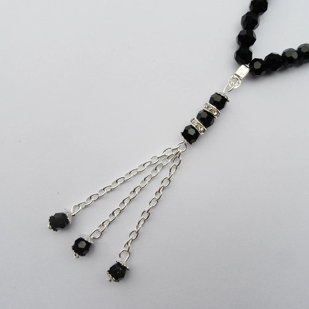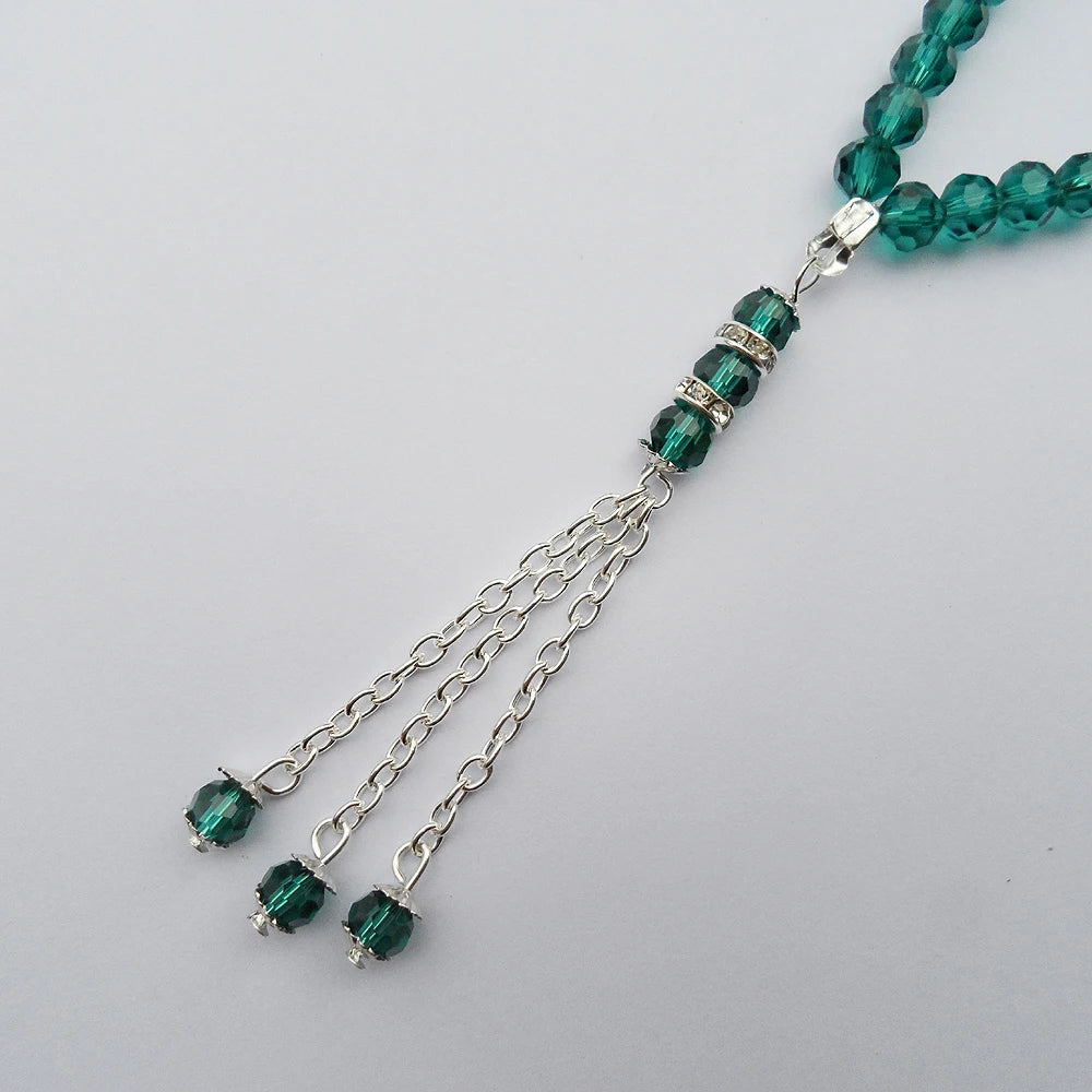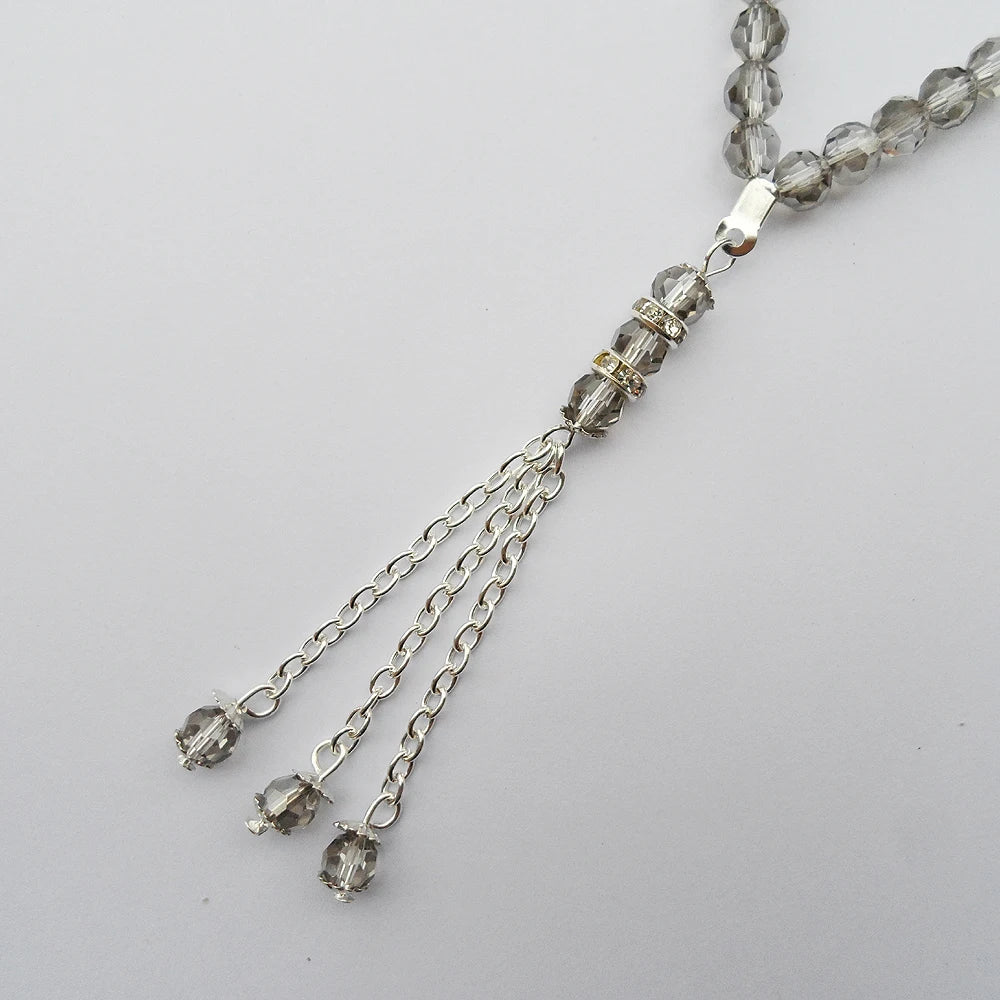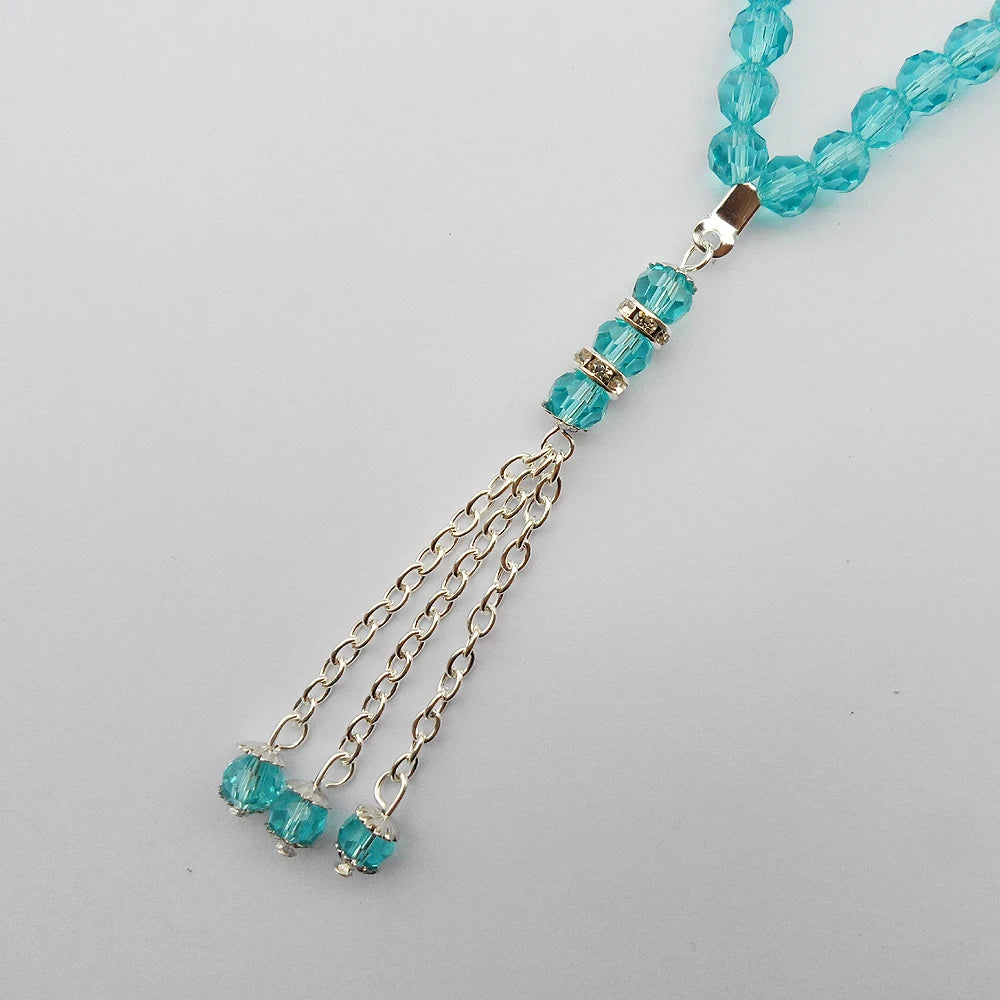 Embrace spirituality and elegance with the Muslim Crystal Tasbih Prayer Glass Beads Bracelet for Men and Women. This beautifully designed charm bracelet is crafted with sparkling crystal beads and features a trendy water drop pattern. Made with silver-plated zinc alloy, it offers durability and a stylish touch. Perfect for prayers or as a meaningful accessory, the tasbih bracelet combines tradition with modernity, making it suitable for both men and women. Its adjustable length ensures a comfortable fit, making it an ideal gift for any occasion.