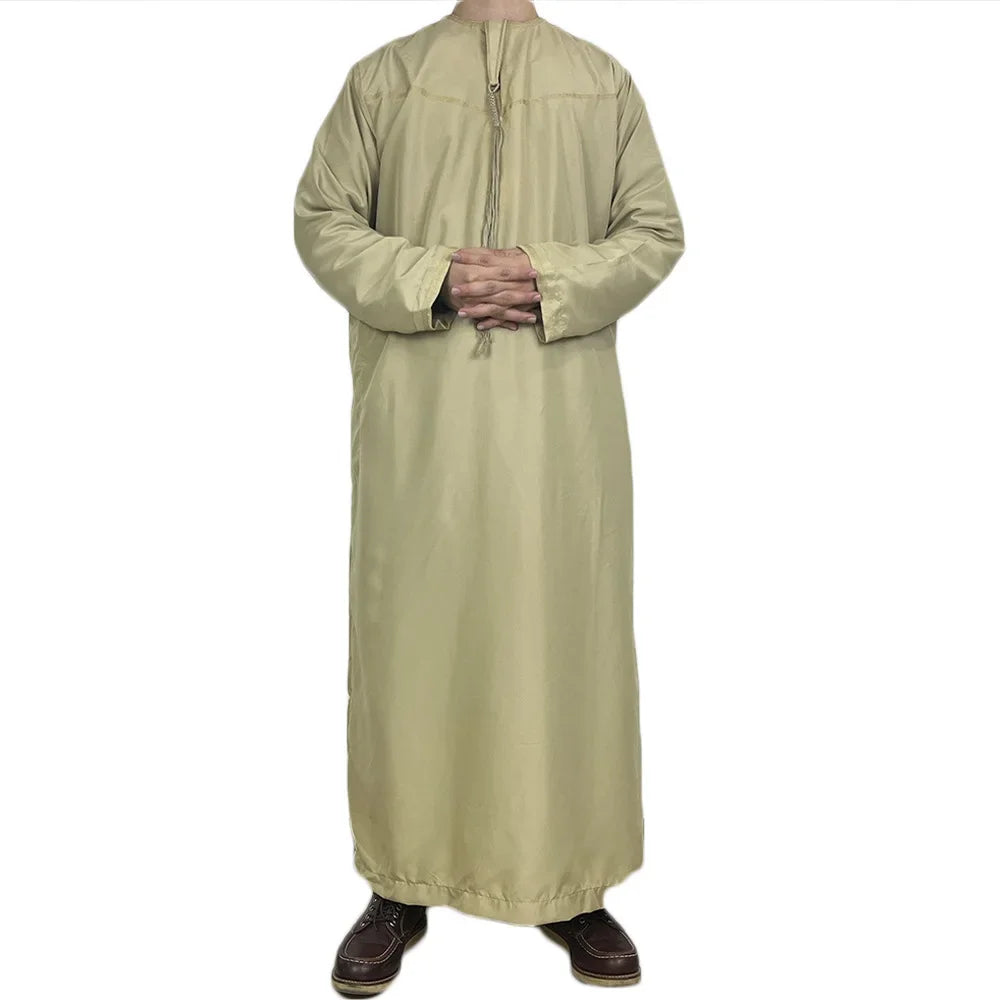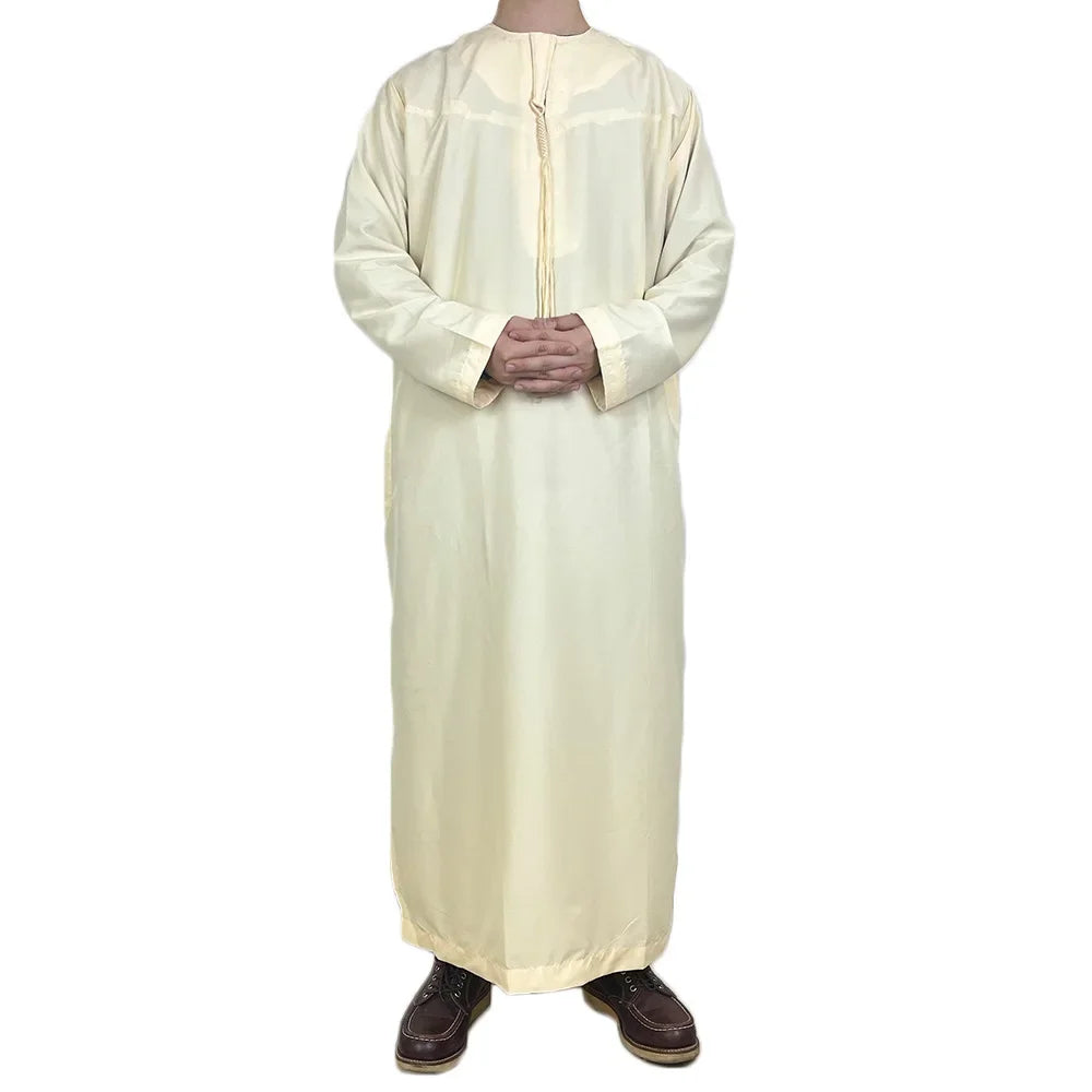 Men Long Sleeve Pullover Dress Abaya Daffah Jubba Thobe Pakistan Saudi Arab Kaftan Islam Clothing Prayer Robe Afghan