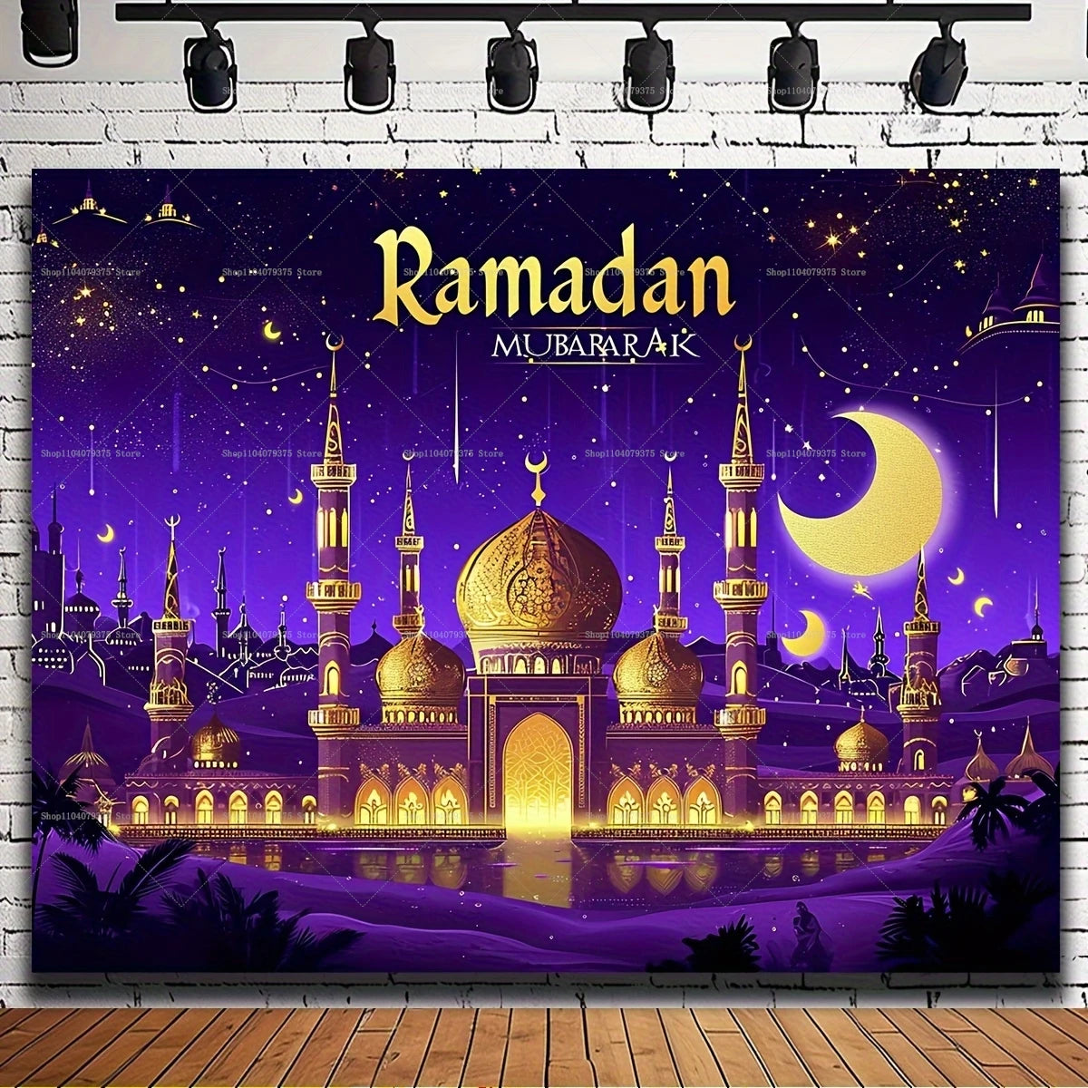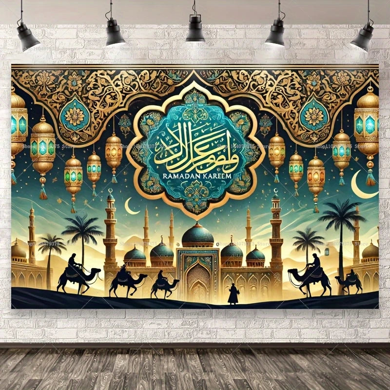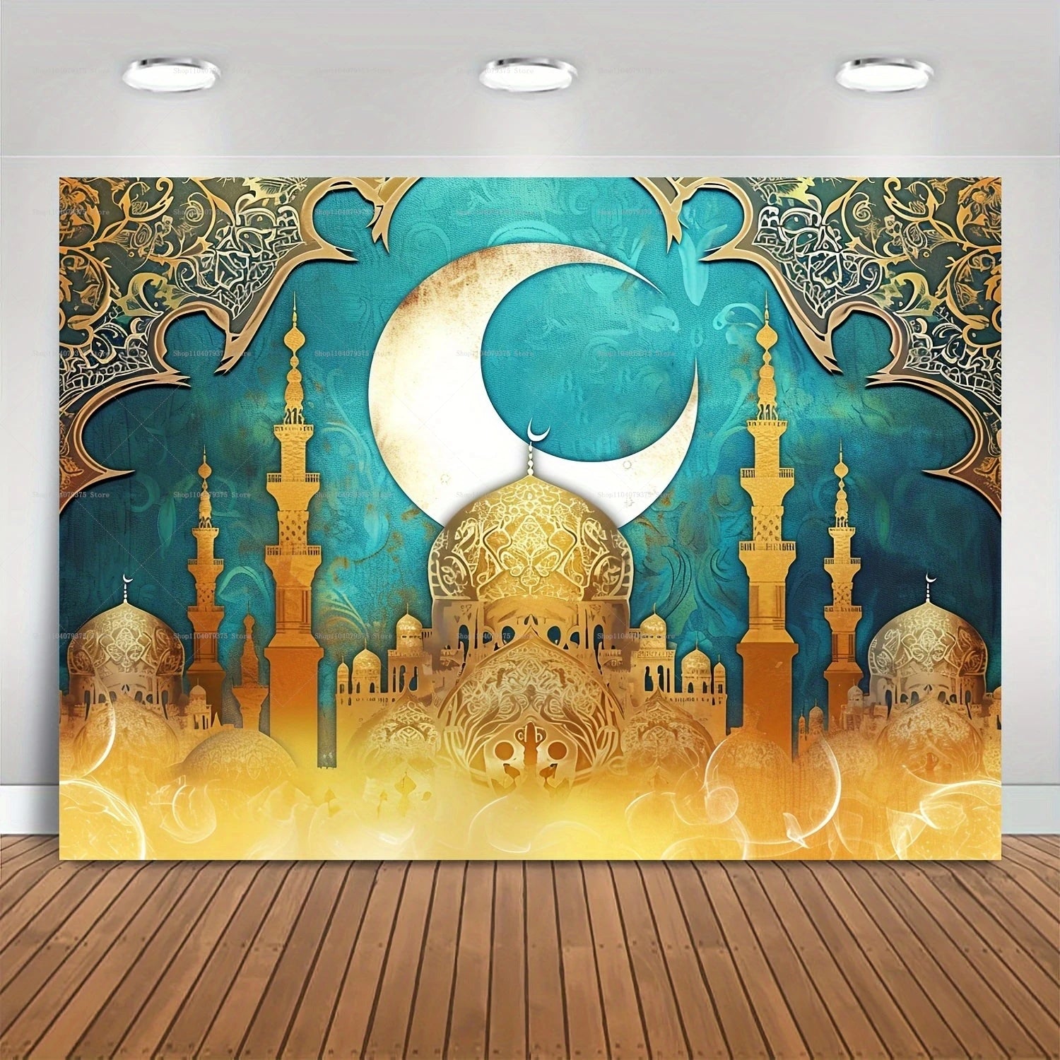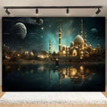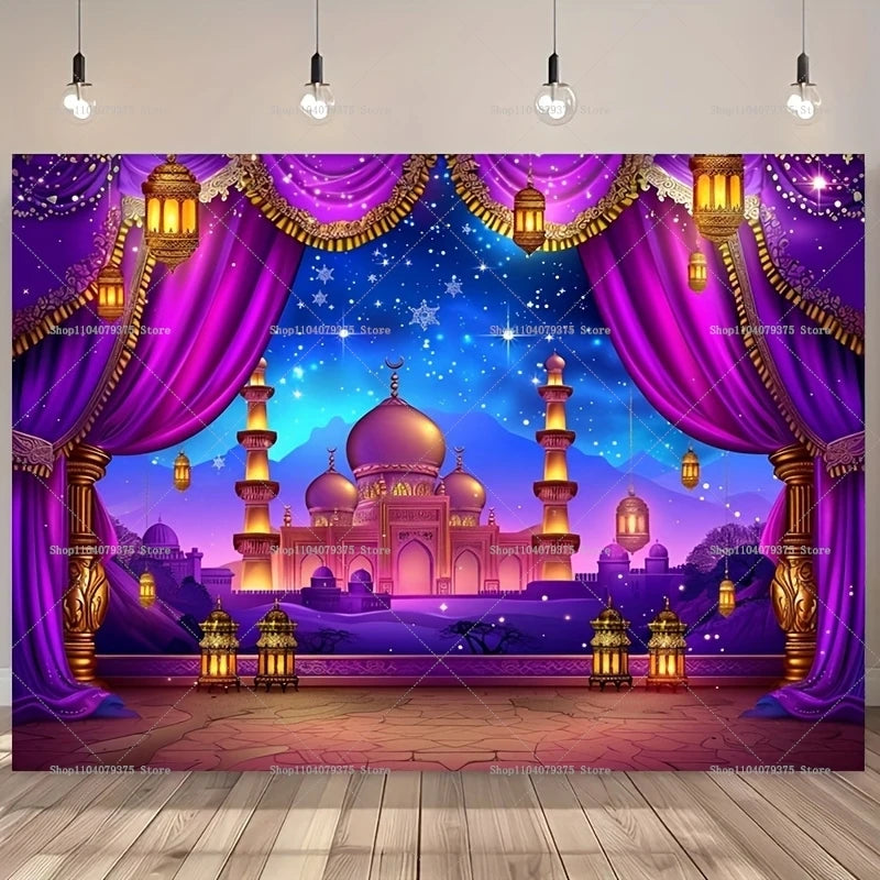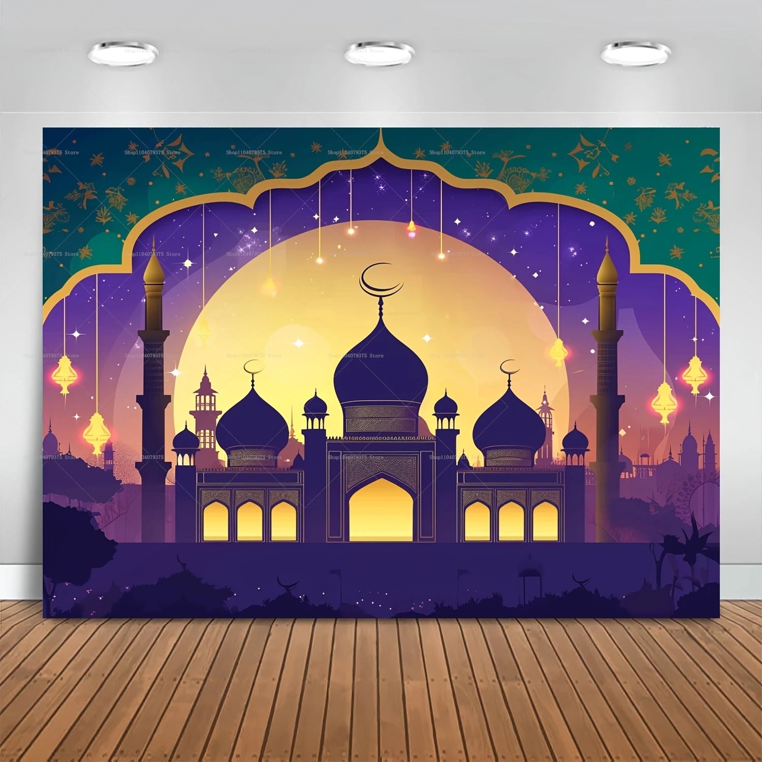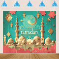 Create a captivating setting for your special moments with the Ramadan Photography Background Eid Al-Fitr. This vinyl backdrop is designed with vibrant patterns, including cartoon animals, letters, and architectural elements, making it ideal for celebrations like Ramadan, Eid,
