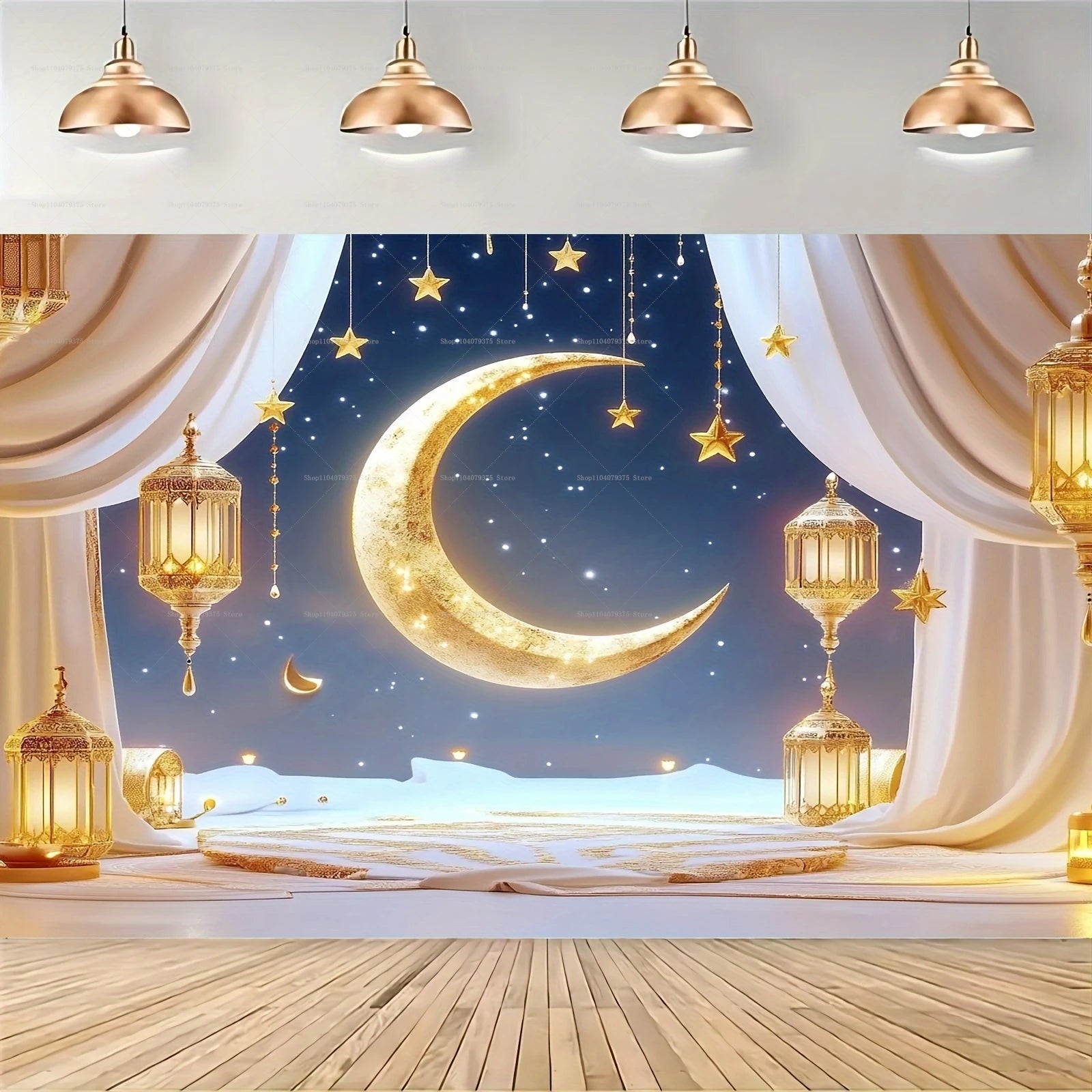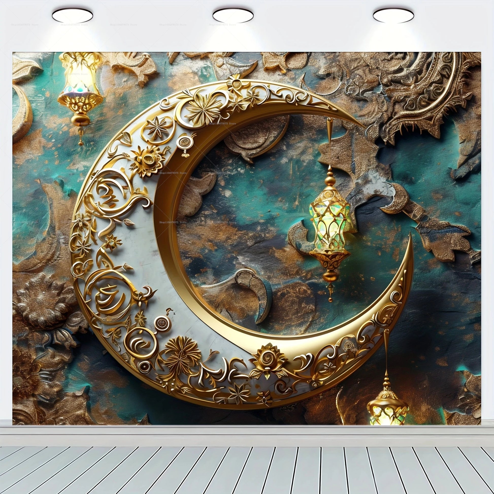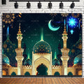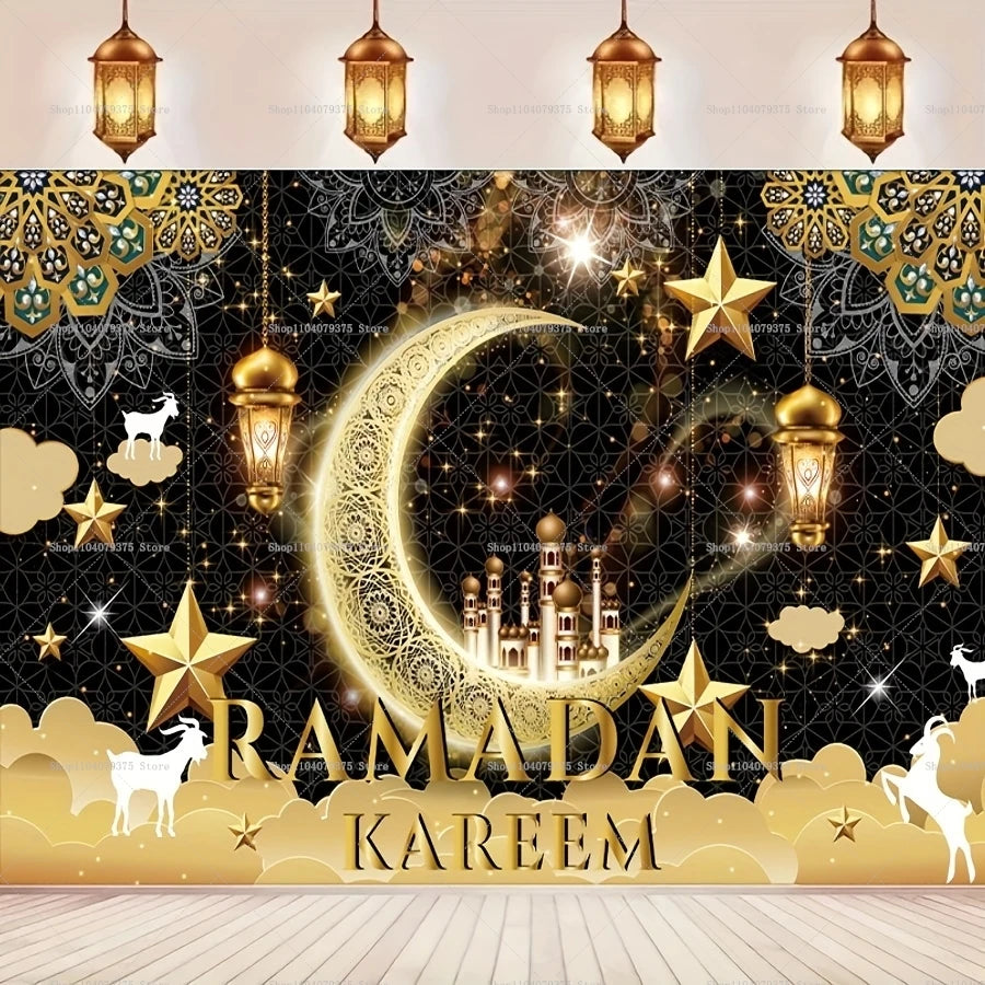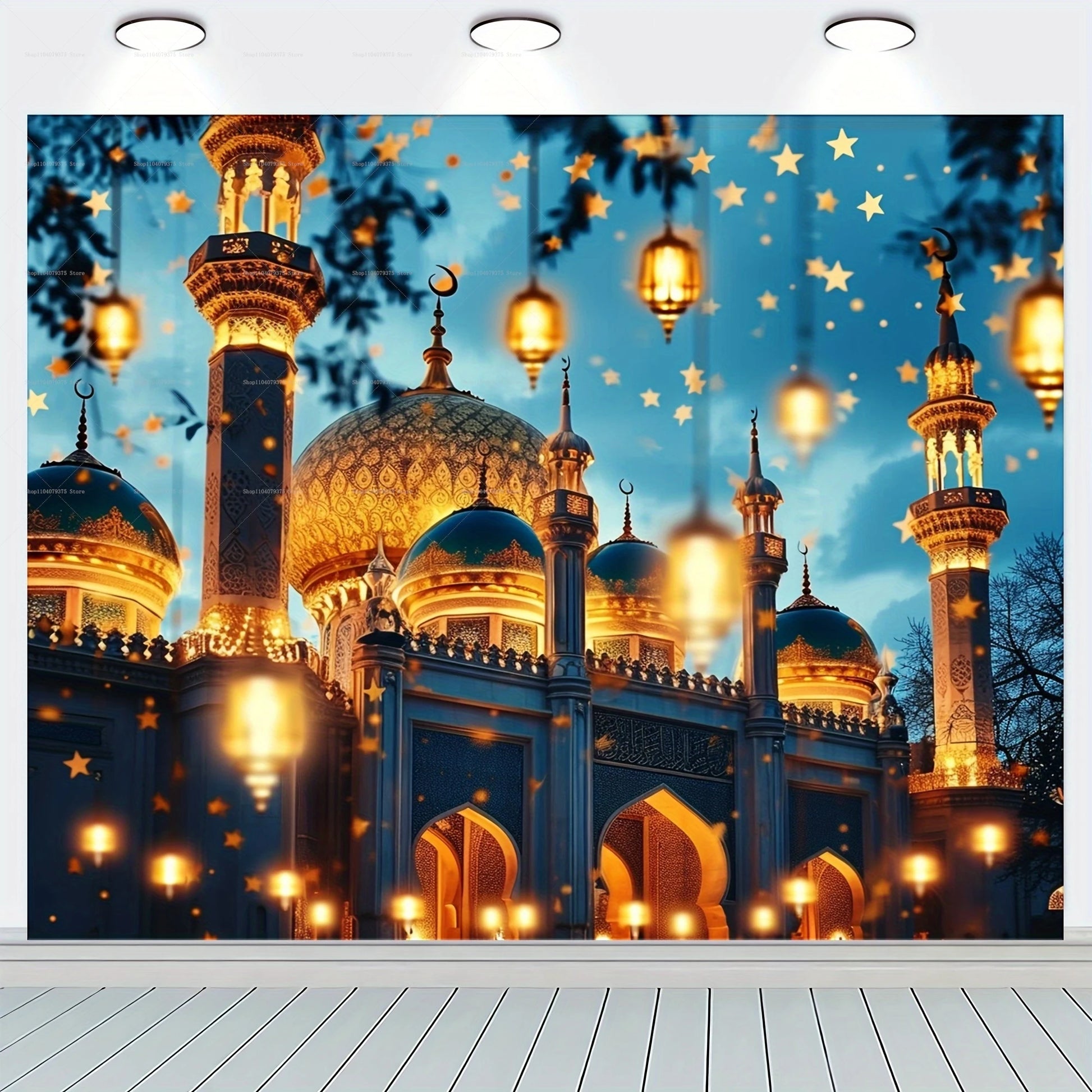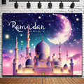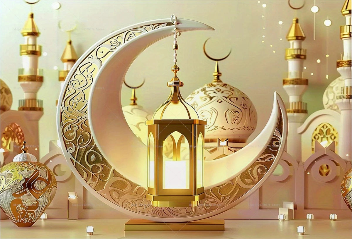 Create a captivating setting for your special moments with the Ramadan Photography Background Eid Al-Fitr. This vinyl backdrop is designed with vibrant patterns, including cartoon animals, letters, and architectural elements, making it ideal for celebrations like Ramadan, Eid,