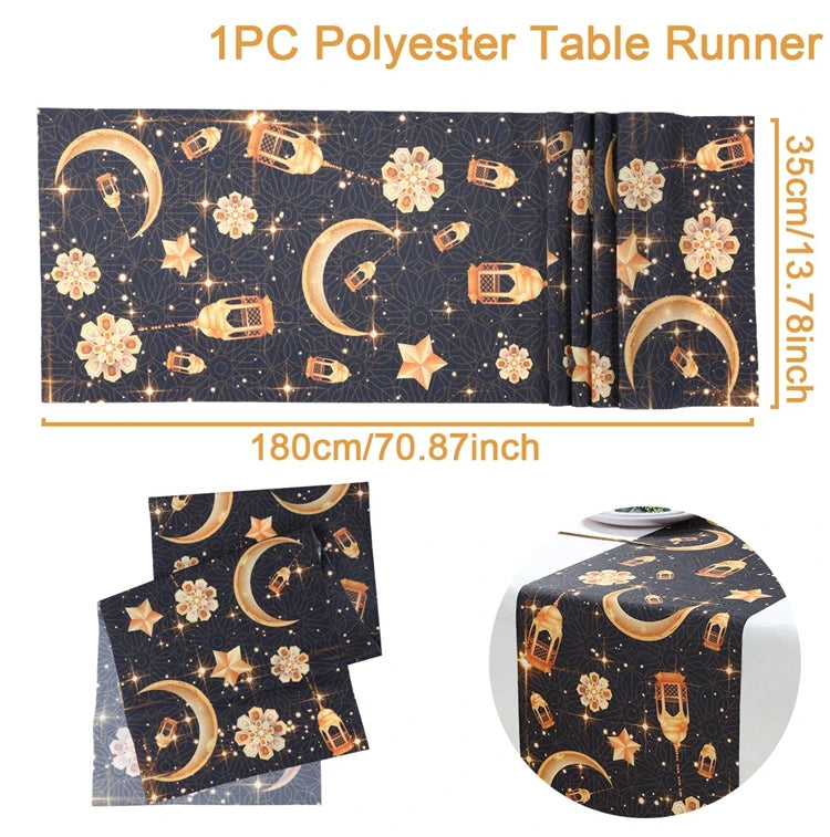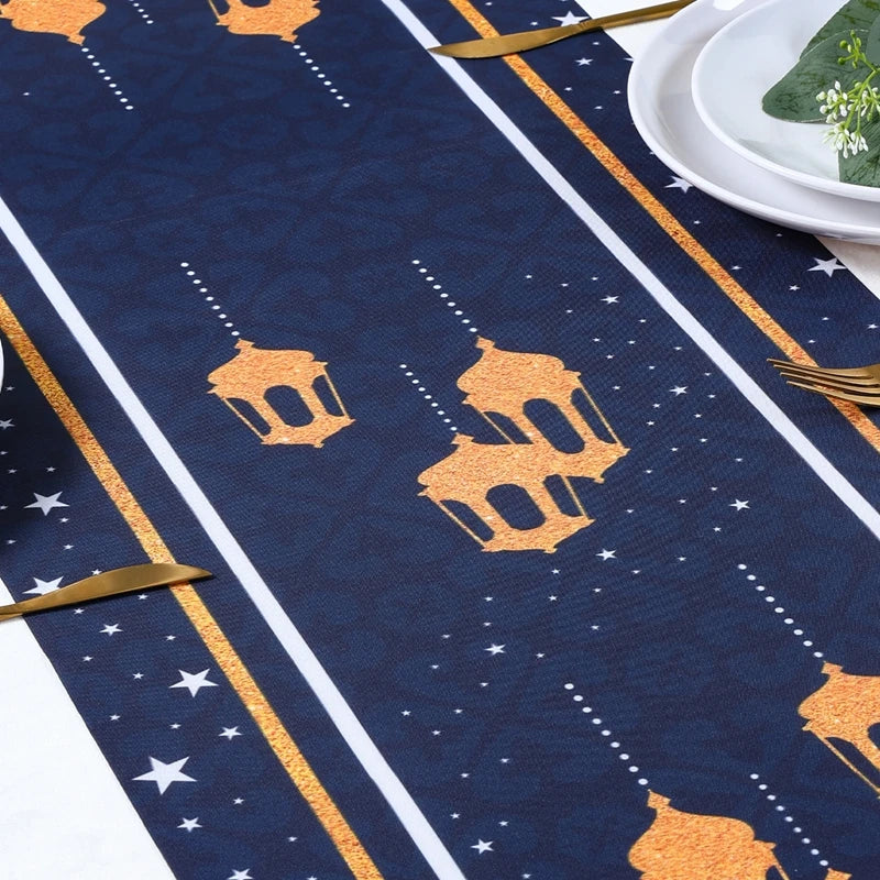 Elevate your festive celebrations with this Ramadan Table Runner, designed to add a touch of elegance and tradition to your home décor. Perfect for Ramadan, Eid al-Fitr, or any Islamic celebration, this high-quality cloth table runner is both functional and decorative. Its vibrant design makes it ideal for family dinners, Islamic gatherings, and Ramadan parties.
